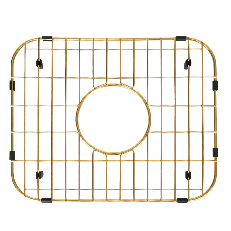 This 304 stainless steel sink bottom grid protect your kitchen sink from scratches and dents. Designed to sit at the bottom of the sink, it elevates dishes and cookware slightly above the surface, allowing water to drain freely while preserving the sink’s finish. The elegant pvd gold finish adds a modern, luxurious touch to any kitchen.