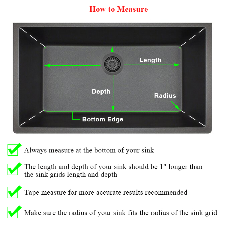 Functionality: A properly measured grid won't obstruct the sink's drain or your ability to wash dishes, ensuring that it serves its purpose without inconvenience.