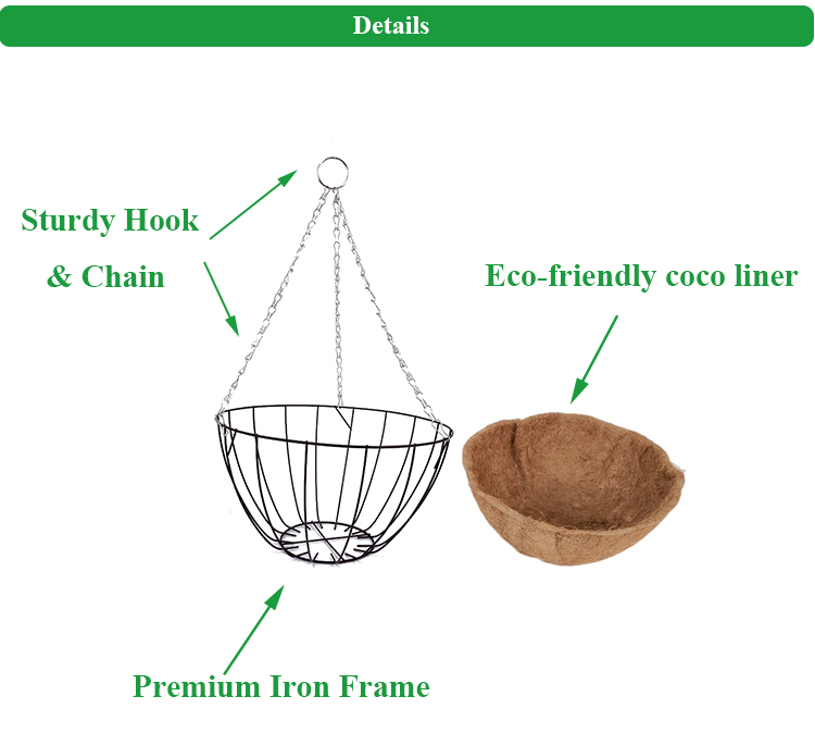 | OEM & ODM: | Acceptable | Keyword: | wholesale wire hanging baskets with coconut liners |